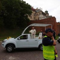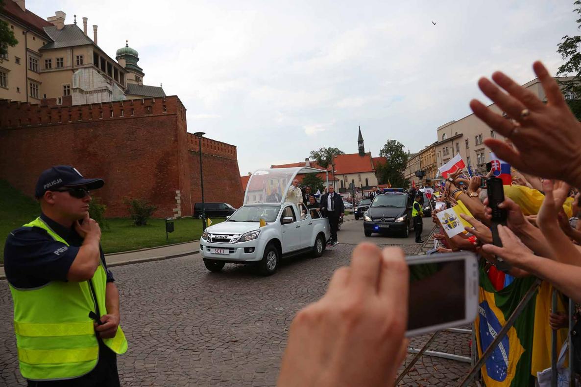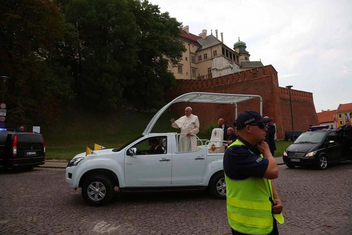 Nella suggestiva cornice della collina che domina riva sinistra della Vistola, il pontefice ha sottolineato la necessità di “collaborazioni e sinergie a livello internazionale al fine di trovare soluzioni ai conflitti e alle guerre, che costringono tante persone a lasciare le loro case e la loro patria”. “Si tratta – ha aggiunto – di fare il possibile per alleviare le loro sofferenze, senza stancarsi di operare con intelligenza e continuità per la giustizia e la pace, testimoniando nei fatti i valori umani e cristiani”.